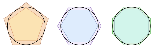 Archimedes 96-sided polygon internal and external estimates for the value of Pi: