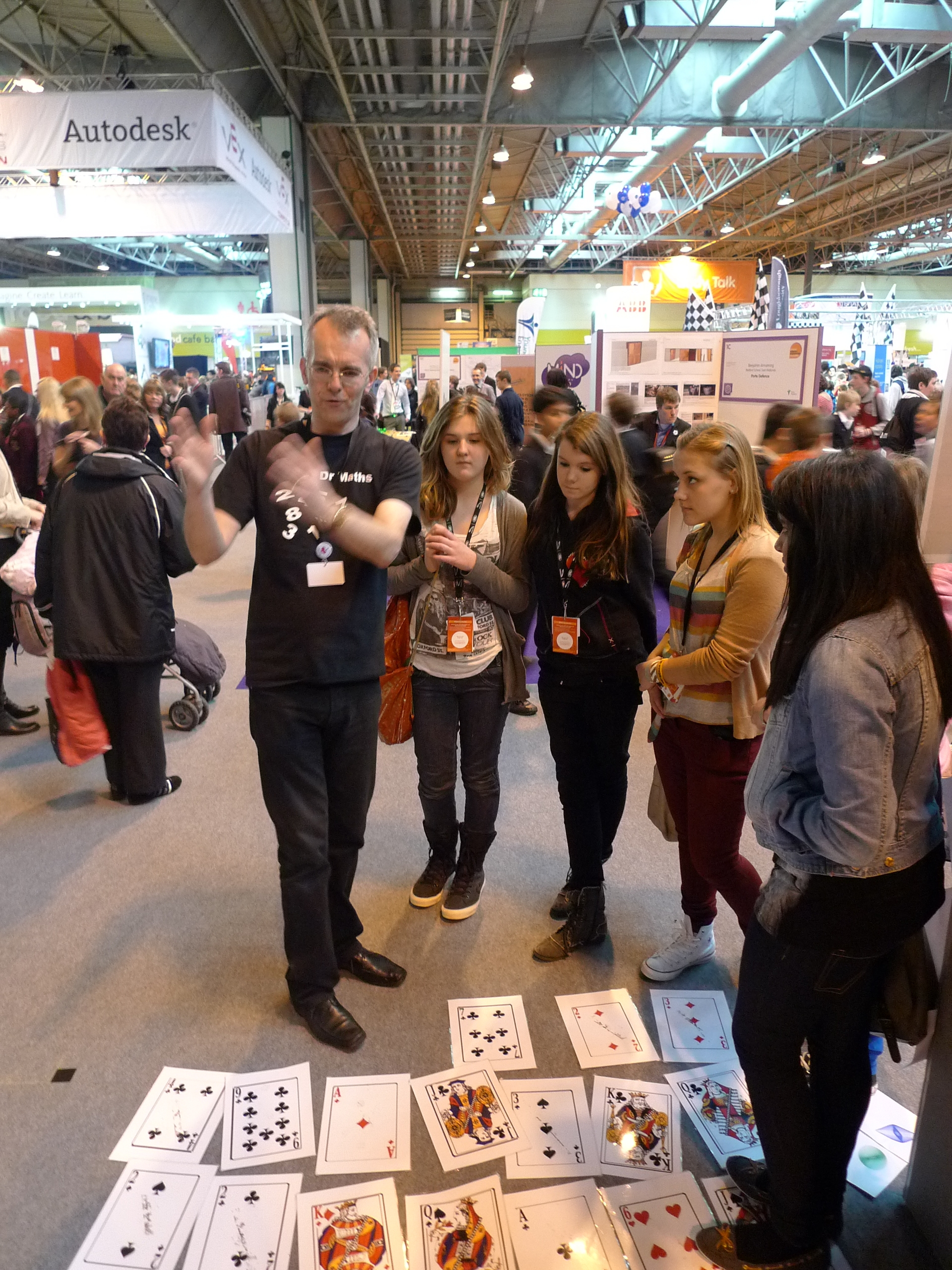 Probability coding – Kruskal Count. Deal out all 52 cards from a pack, face up, in a line. Start at the first card and move along using the value of the card. Note in my version of this game any court card and ten you land on counts as one. Once you reach your final card make a note of this, then repeat for the next few starting cards. You have a high chance of landing on the same card. Amazing!